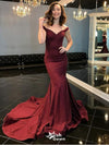 Elegant Red Mermaid Off-Shoulder Popular Long Evening Dresses, Formal Dresses, Birthday Party, WGP588