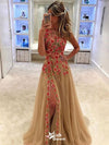 Elegant Flower A-Line Sleeveless Side Slit Popular Long Evening Dresse