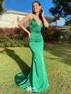 Sexy Emerald Green Mermaid V Neck Halter Lace Up Long Formal Prom Dresses,Evening Gowns,WGP332