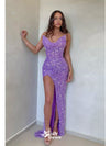 Sexy Lilac Mermaid Strapless Side Slit Maxi Long Party Prom Dresses,WGP282