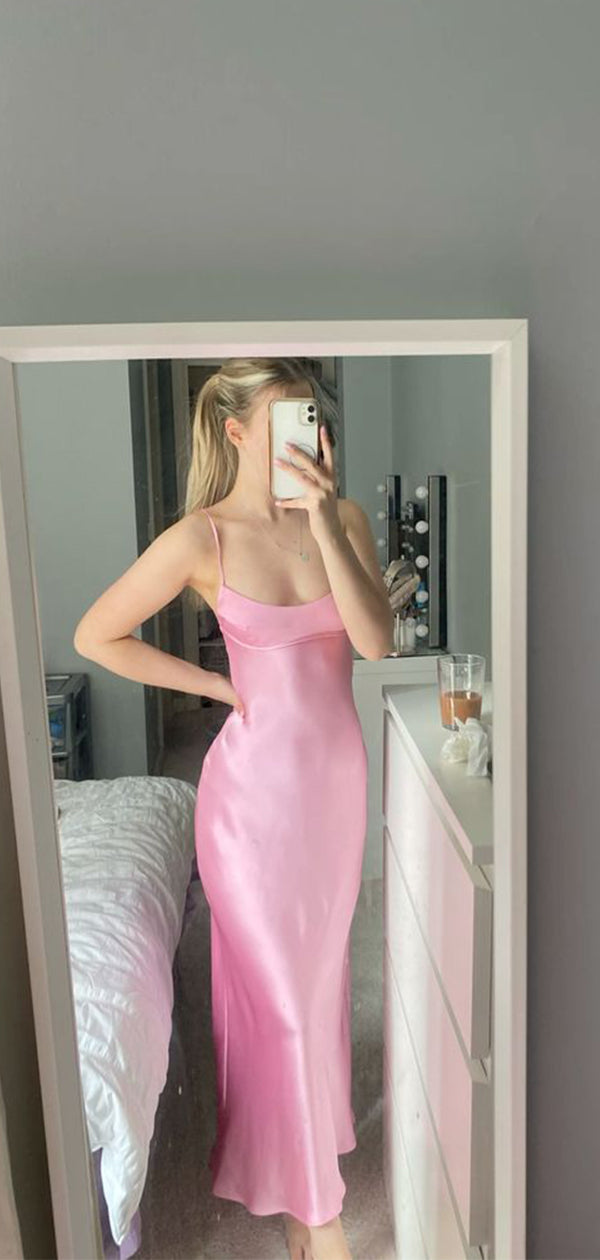 Sexy Pink Spaghetti Strap Mermaid Long Sleeve Popular Long Evening Dresses, Formal Dresses, Birthday Party, WGP683