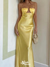 Stylish Yellow Spaghetti Straps Satin Sheath Long Prom Dresses ,WGP106