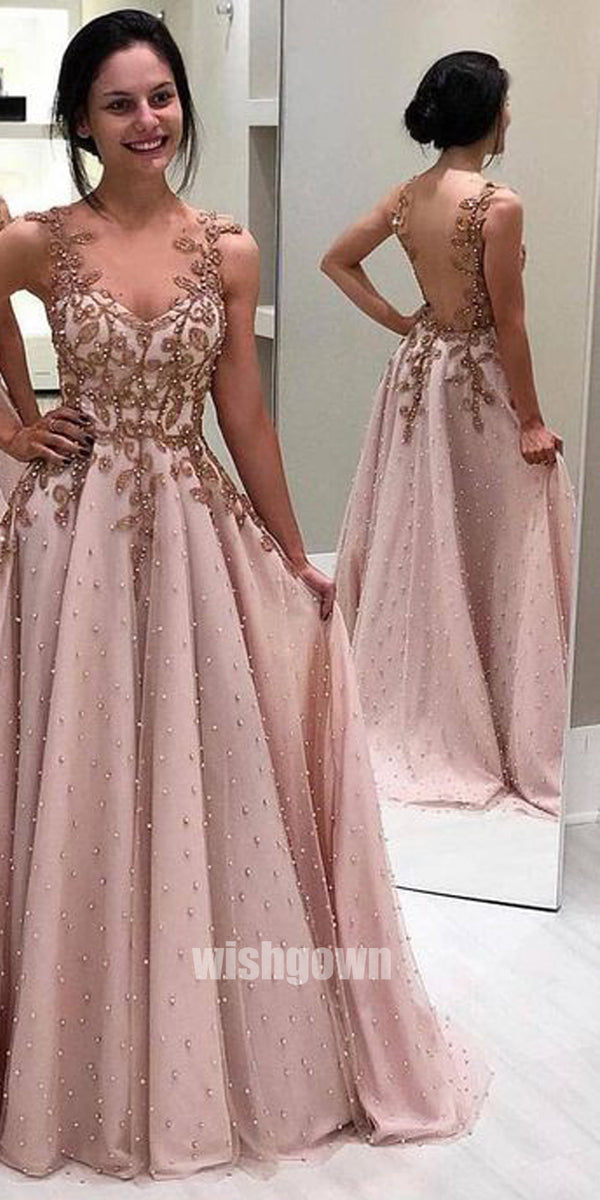 Chaming Pink Open-back Beading Long Prom Dresses PG1196