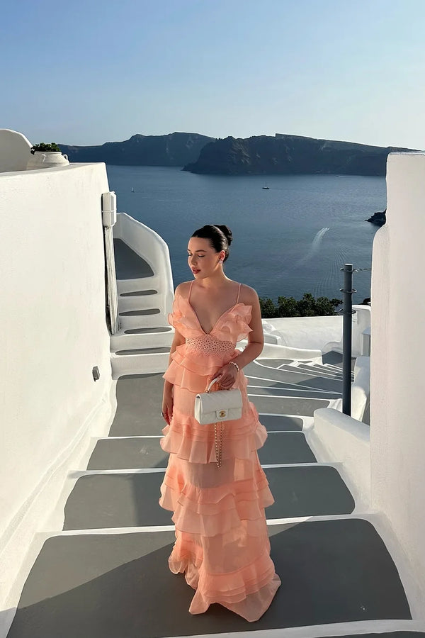 Elegant Coral Spaghetti Strap A-Line Long Prom Dress Ideas, Evening Party Dresses,WGP1756