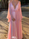 Elegant Deep V-neck Spaghetti Strap A-line Long Prom Dress Ideas, Evening Party Dresses,WGP1359