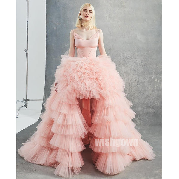 High Low Pink Tulle Gorgeous Long Prom Dresses PG1111