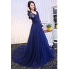Royal Blue Long Sleeves Tulle Elegant Cheap Long Prom Dresses, WG1050