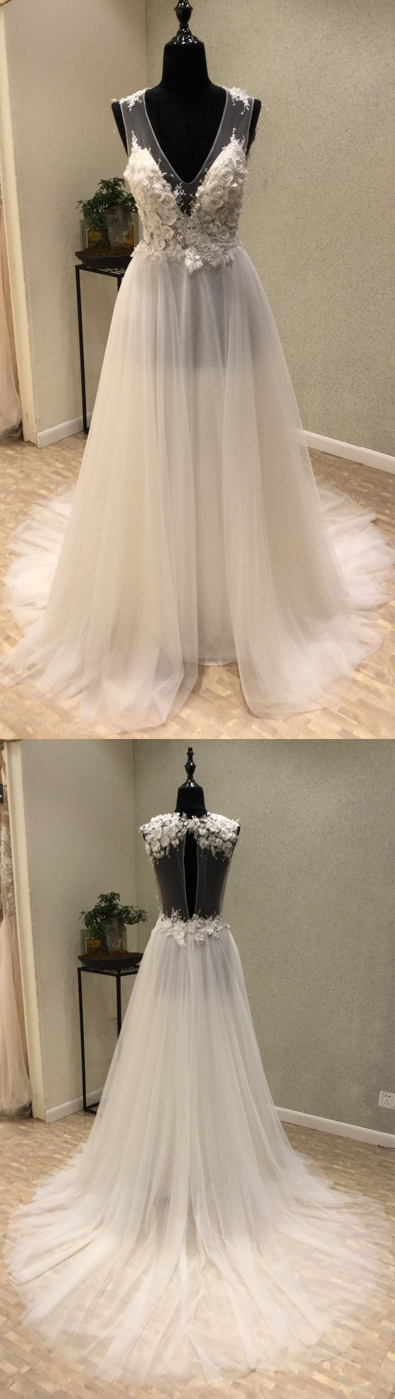 Cheap V Neck Seen Through Back Beach Long Cheap Wedding Dress, WG688