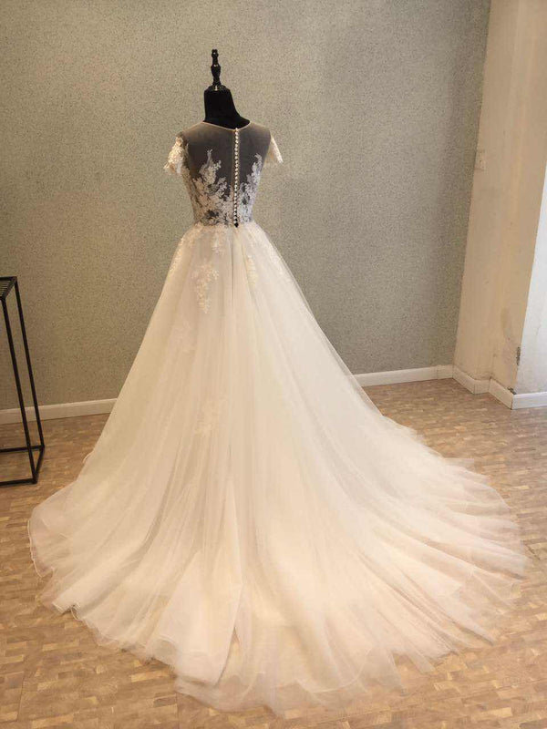 Short Sleeves Tulle Applique Charming Long Bridal Wedding Dress, WG681