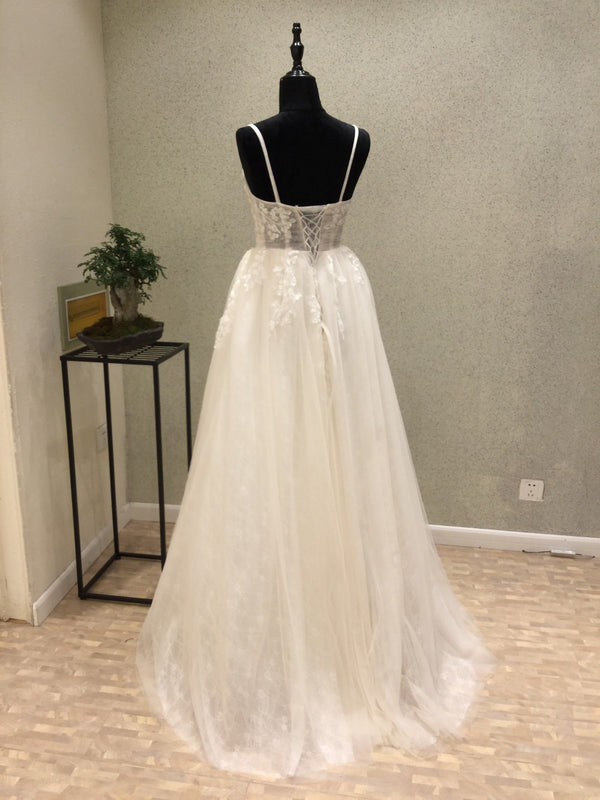 The wedding dresses are fully lined, 4 bones in the bodice, chest pad in the bust, lace up back or zipper back are all available.