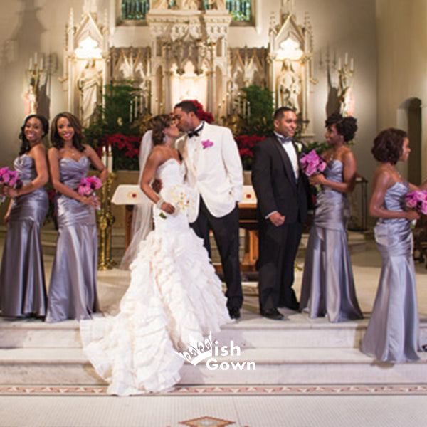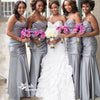 Silver Satin Pleats Sweetheart Mermaid Floor-length Long Bridesmaid Dresses, WGM011