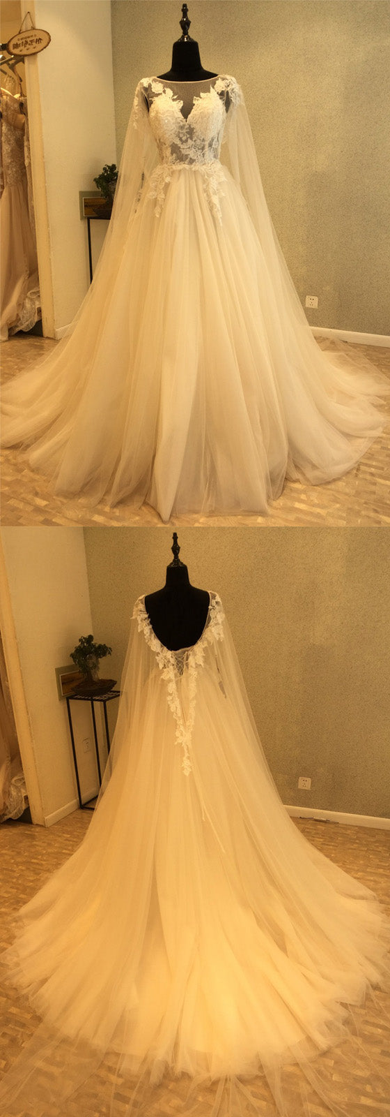 Charming Gorgeous Tulle Applique Affordable Long Brides Wedding Dresses, WG1217