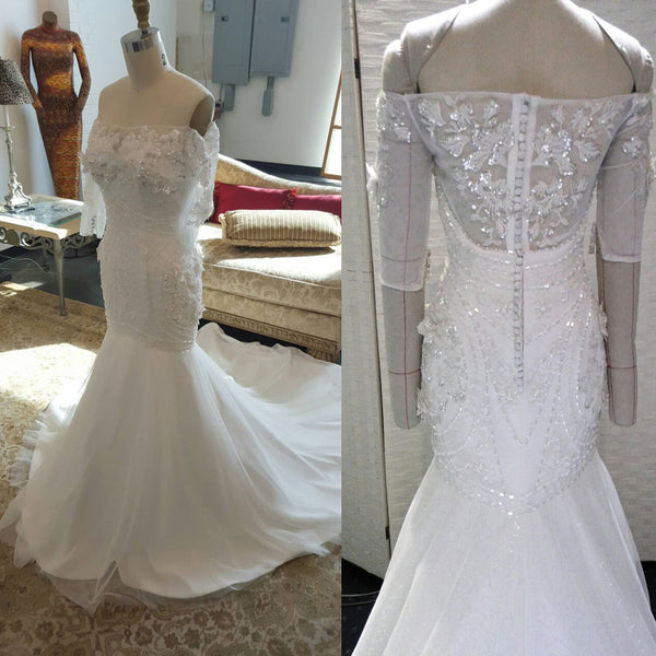 Gorgeous Beaded Long Sleeves Mermaid Straight Neck Long Bridal Wedding Dress Gown, WG637