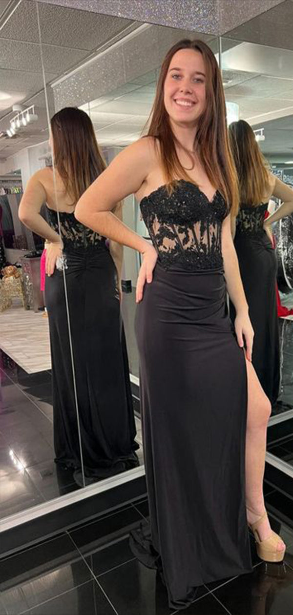 Charming Black Mermaid Sweetheart Sleeveless Side Slit Applique Cheap Maxi Long Party Prom Gowns,Evening Dresses,WGP466