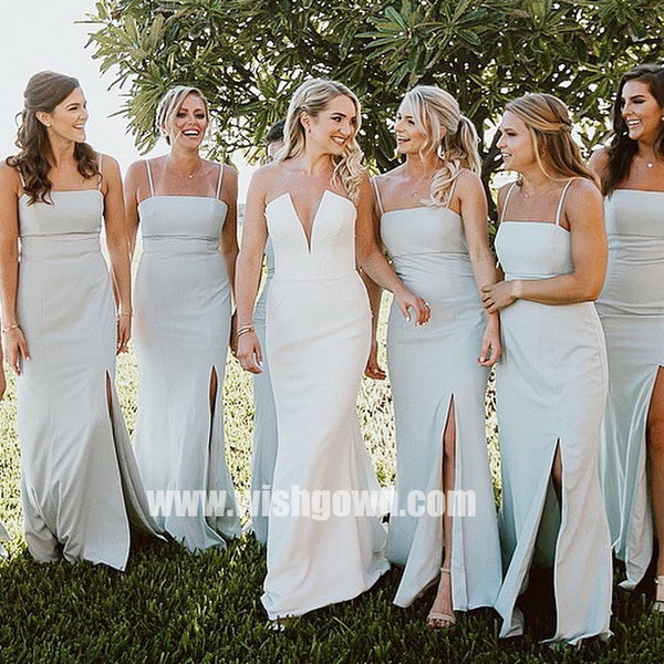 Simple Spaghetti Strap Split Side Long Bridesmaid Dresses, YPS149