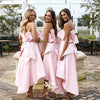 Pink White Bowknot Strapless A-line Short Front Long Back Wedding Party Bridesmaid Dresses, WGM029