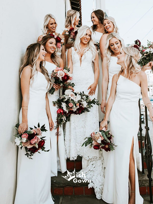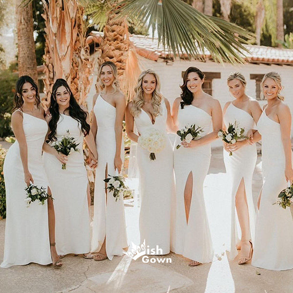 Asymmetric One Shoulder Soft Satin Mermaid Wedding Guest Bridesmaid Dresses, WGM055