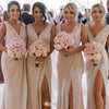 Elegant Beige V-Neck Sleeveless Mermaid Side Slit Long Bridesmaid Dresses Online,WGM434