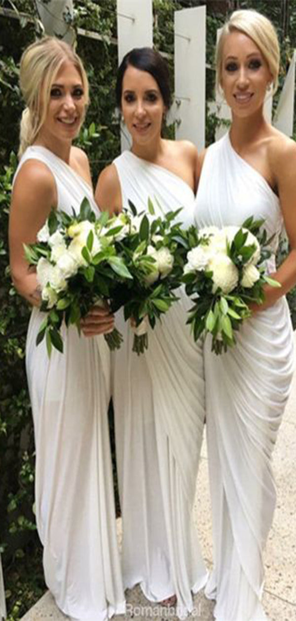 Elegant White Mermaid One Shoulder Sleeveless Pleats Popular Cheap Maxi Long Wedding Guest Bridesmaid Dresses,WGM267