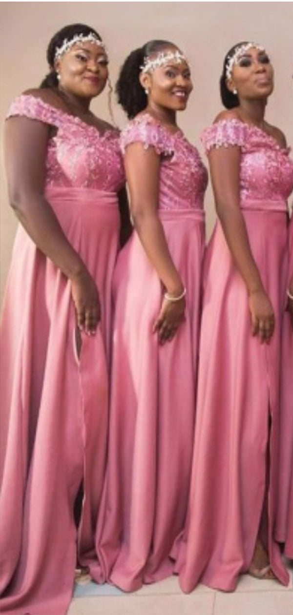 Gorgeous Dark Pink A-Line Off Shoulder Applique Side Slit Popular Cheap Maxi Long Wedding Guest Bridesmaid Dresses,WGM256
