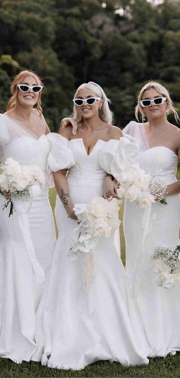 Mismatched White Mermaid Popular Cheap Maxi Long Wedding Guest Bridesmaid Dresses,WGM235