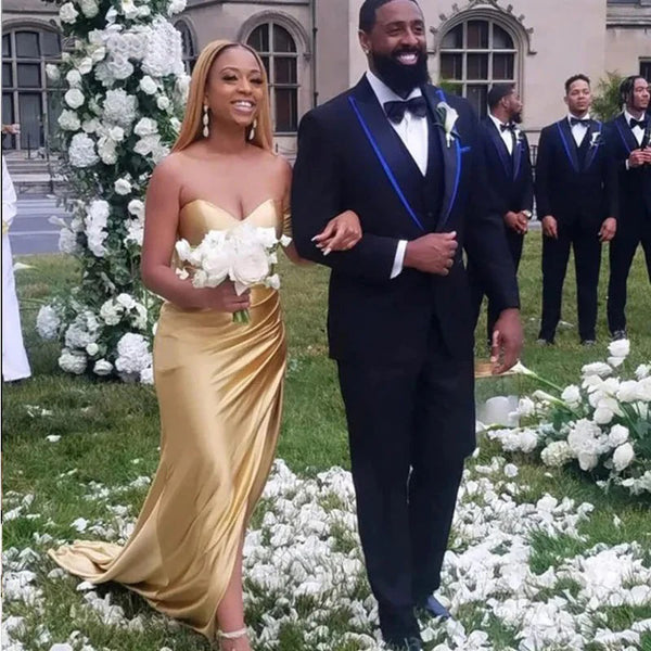 Sexy Mermaid Off-Shoulder Sweetheart Side Slit Sleeveless Wedding Gues