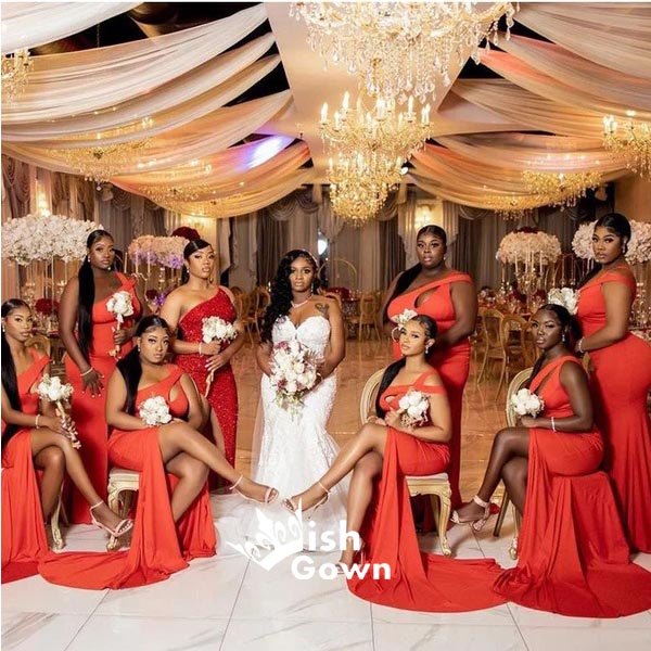 Sexy Red Mermaid One Shoulder High Slit Long Bridesmaid Dresses Online, WGM129
