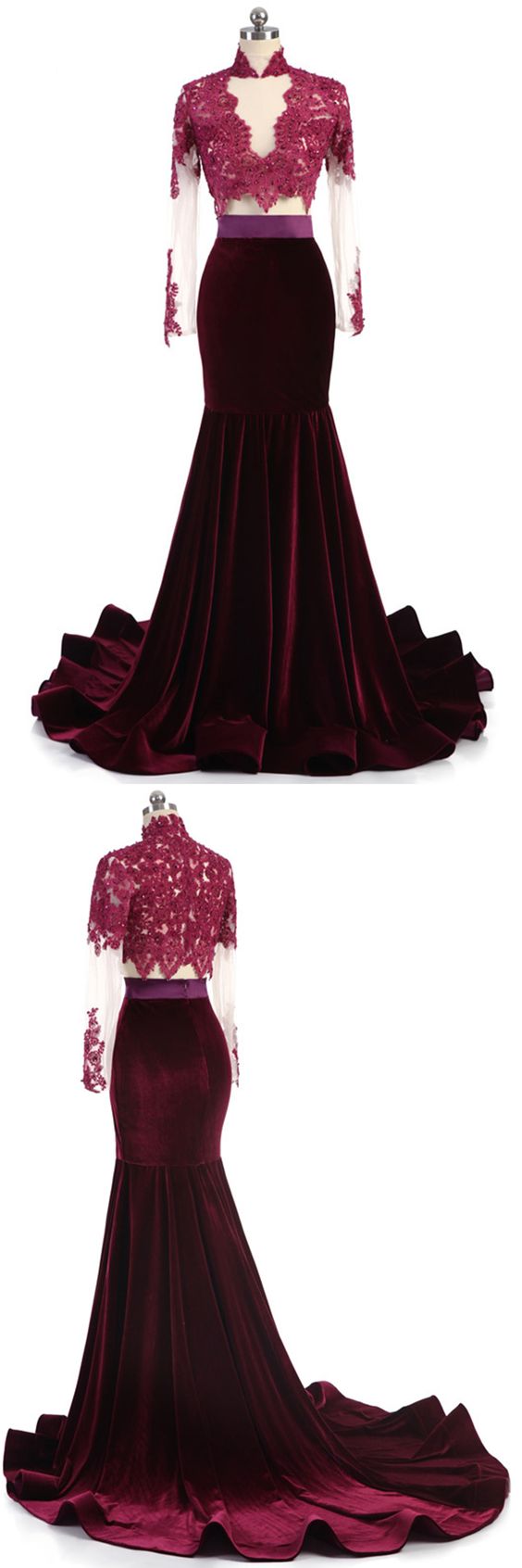 Elegant Long Sleeves Mermaid Sexy Cheap Long Evening Prom Dresses, WG1017