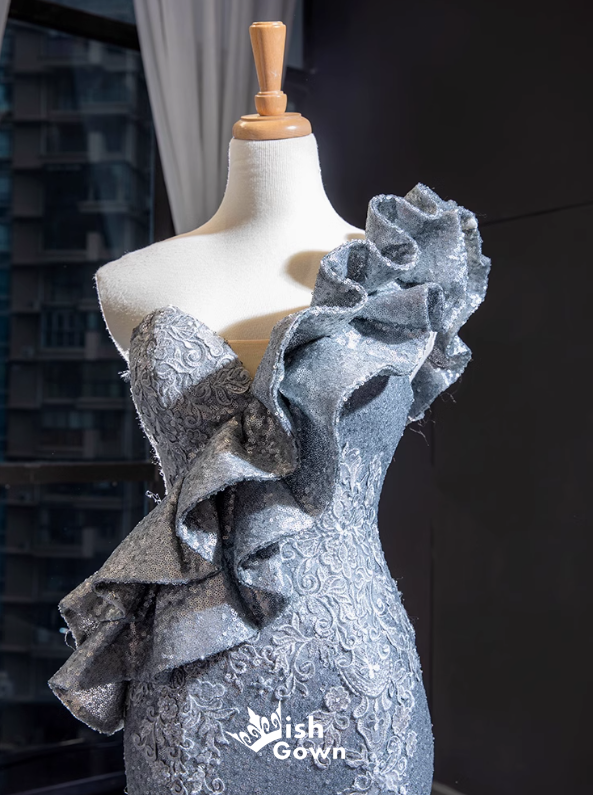 Elegant One Shoulder Embroidery Mermaid Lace up Back Party Dress Long Prom Dresses to Impress, WGP948