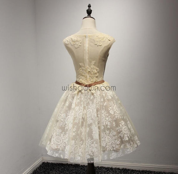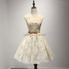 Champagne Lace Applique Pretty Short Homecoming Dresses, WG802