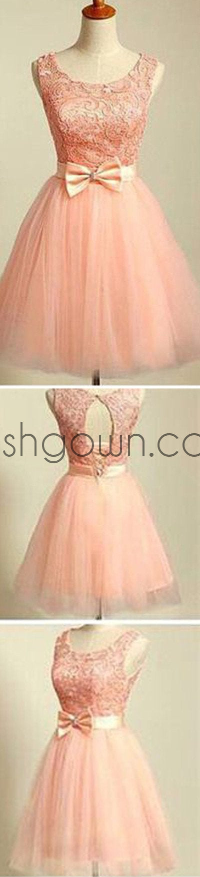 The peach pink lace lovely homecoming dresses are fully lined, 8 bones in the bodice, chest pad in the bust, lace up back or zipper back are all available.