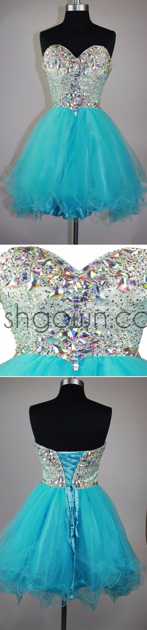 The sweetheart sparkly cute homecoming dresses are fully lined, 8 bones in the bodice, chest pad in the bust, lace up back or zipper back are all available.