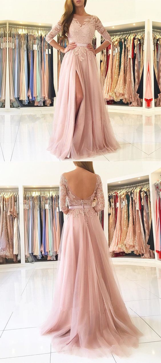 Long Sleeve Side Split Tulle Formal Evening Cheap Long Prom Dresses, W
