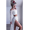 Off the Shoulder Two Pieces Long Sleeves Sexy Side Split Lace Beach Long Prom Dresses, WG787