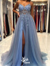 Sexy A-Line Spaghetti Straps Side Slit Lace Appliques Long Formal Prom Dresses,Evening Gowns,WGP325