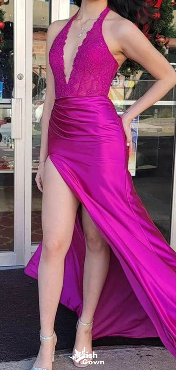Sexy V-neck Halter Mermaid Long Prom Dress Ideas, Evening Party Dresses,WGP1174