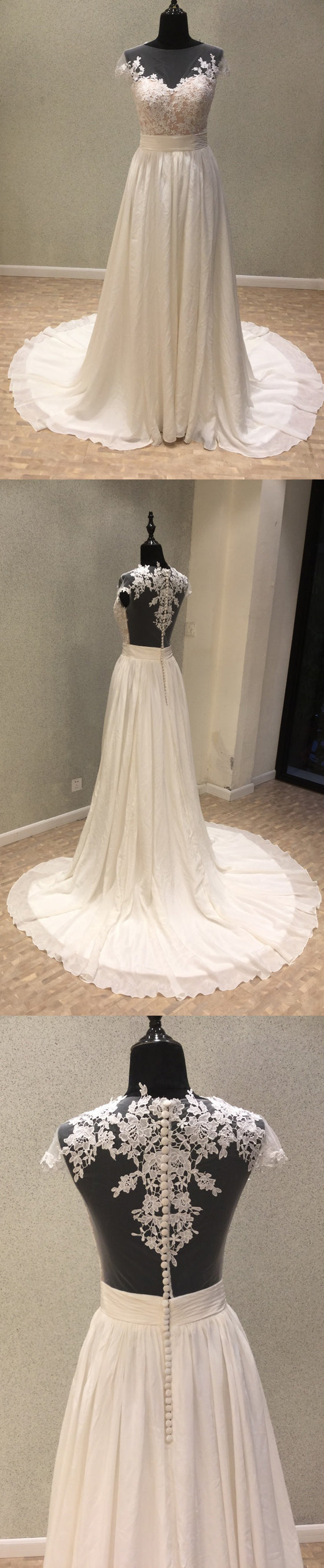 Short Sleeves Seen Through Back Simple Popular Long Cheap Bridal Wedding Dress, WG694