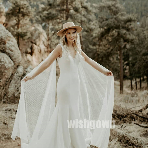 Unique V-Back Sleeveless Mermaid Long Wedding Dresses WDH003