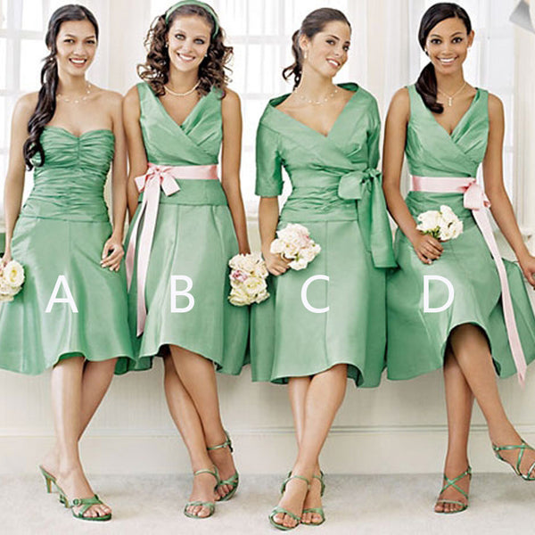 Unique Women Satin Mismatched Green Different Styles Cheap Short Bridesmaid Dresses, WG149