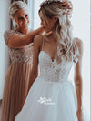 Shining Spaghetti Straps Beaded Appliqued A-line Tulle Wedding Dresses, WGB021