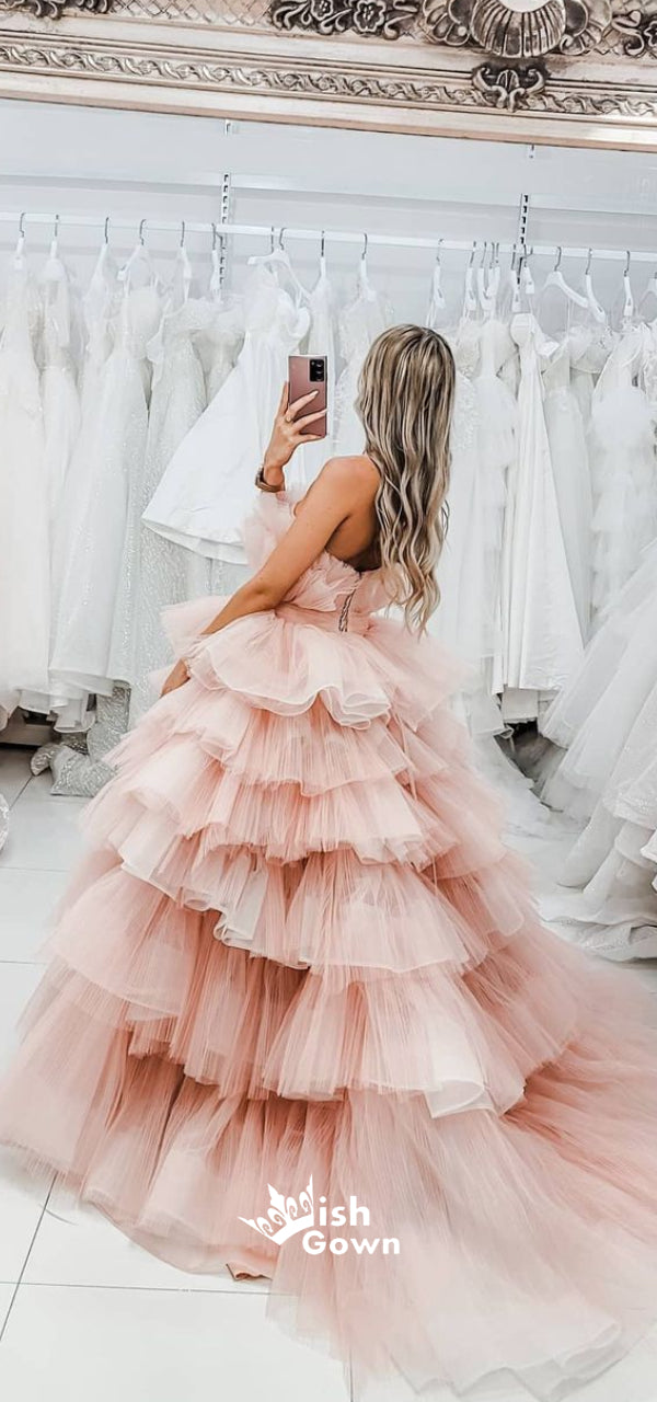 Pink Princess Thousand-layer Strapless Puffy Tulle Ball Gowns Prom Dresses, WGP132