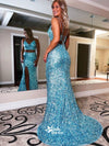 Two Pieces Sequins Spaghetti Straps Lace Up Mermaid Evening Gowns Prom