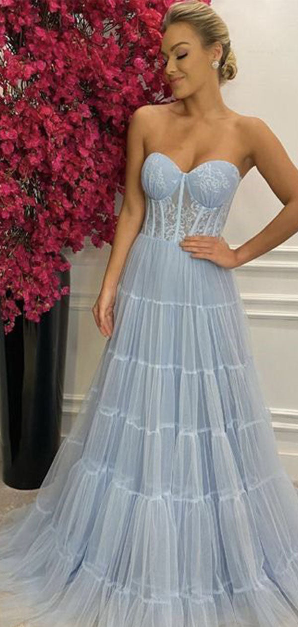 Elegant Blue Sweetheart A-Line Long Prom Dress Ideas, Evening Party Dresses , WGP1592
