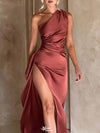 Elegant One-Shoulder Mermaid Side Slit Long Prom Dress Ideas, Evening Party Dresses , WGP1591