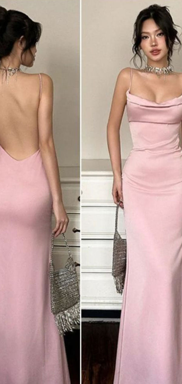 Elegant Pink Spahetti Strap Mermaid Long Prom Dress Ideas, Evening Par