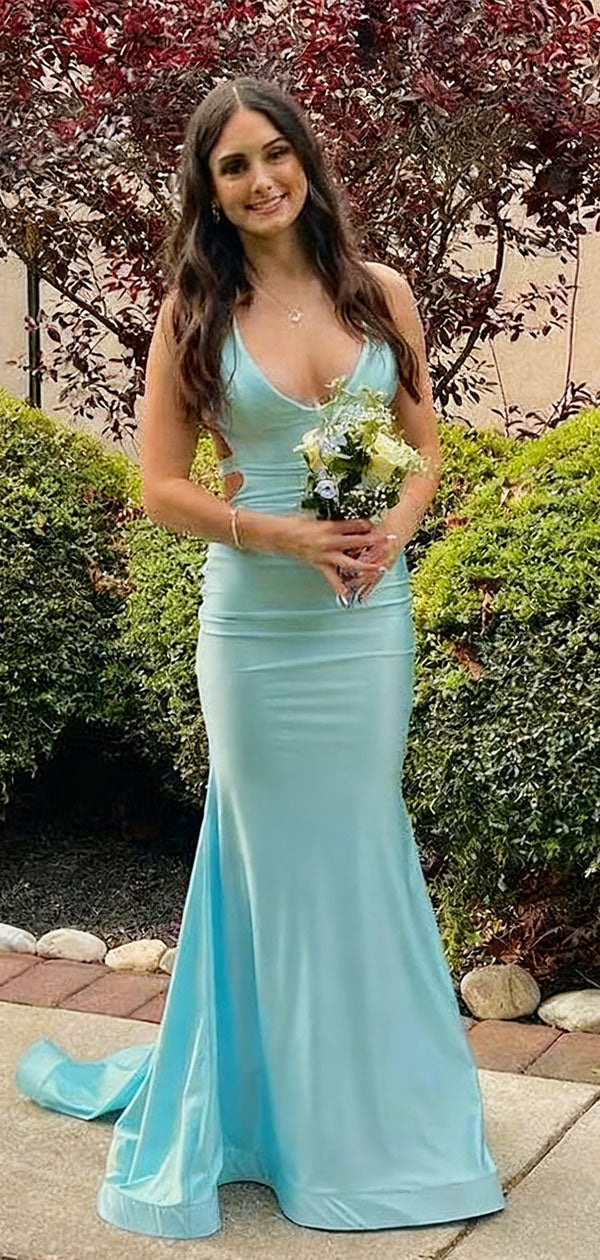 Elegant Teal Spaghetti Strap Mermaid Long Prom Dress Ideas, Evening Party Dresses,WGP1675