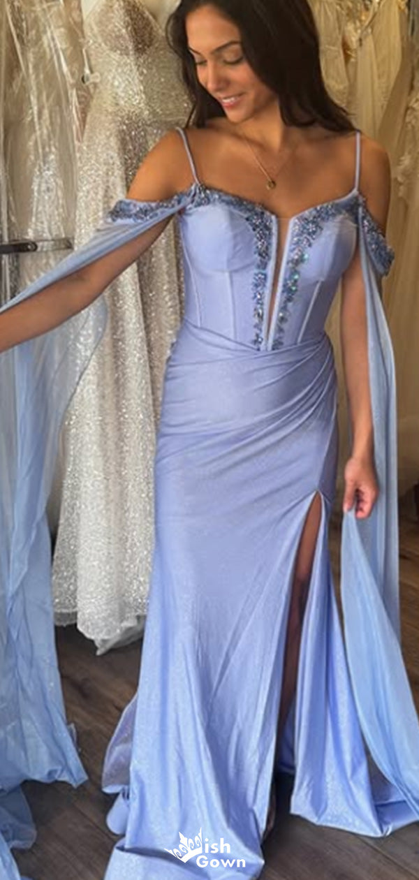 Gorgeous Spaghetti Strap Off-shoulder Mermaid Long Prom Dress Ideas, Evening Party Dresses,WGP1598