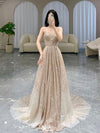 Shiny Gold Spaghetti Strap A-Line Long Prom Dress Ideas, Evening Party