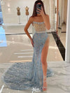 Sparkly Blue Sweetheart Mermaid Side Slit Long Prom Dress Ideas, Eveni