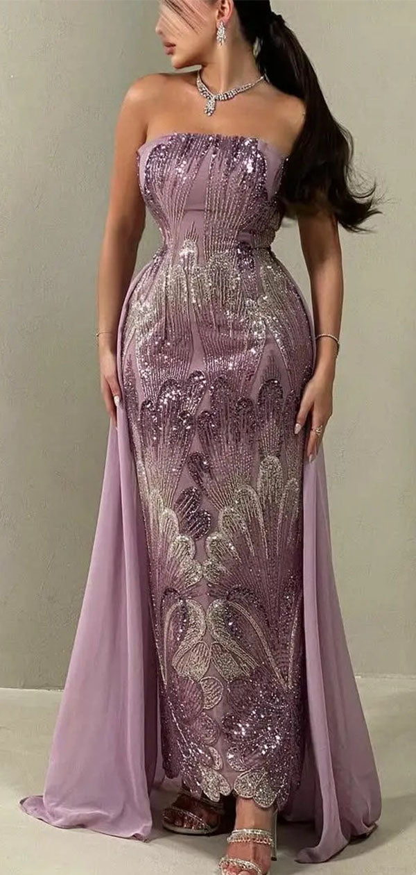 Sparkly Purple Sweetheart Applique Long Sleeve Mermaid Long Prom Dress Ideas, Evening Party Dresses,WGP1755